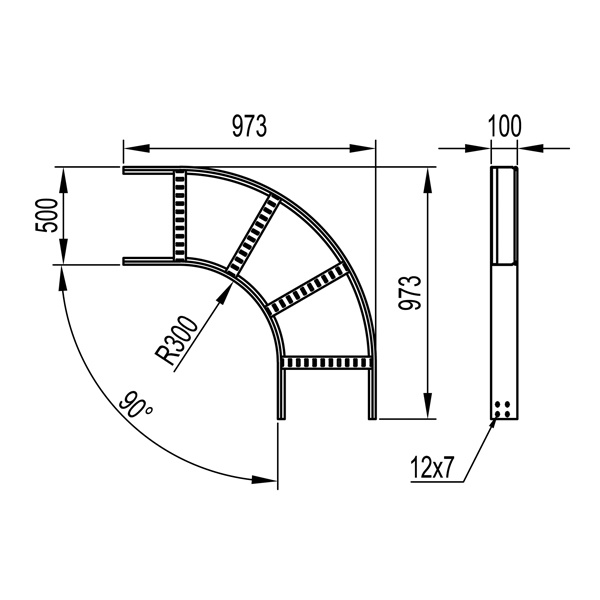 Горизонтальный угол 90° предназначен для формирования поворота кабельной трассы на 90° в горизонтальной плоскости и обеспечивает аккуратное и надежное изменение направления прокладки кабелей. Конструкция аксессуара рассчитана на использование в составе лотковых кабельных систем и гарантирует совместимость с основными элементами трассы.