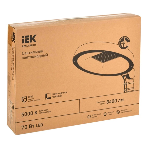Консольный светодиодный светильник ИЭК ДКУ 2001 с наклонным шарниром для уличного освещения, мощностью 70 Ватт, дневной свет КСС Д LDKU0-2001-070-5000-K02Высокотехнологичное дизайнерское решение для освещения парков и прогулочных дорожек, городских улиц и площадей, территорий у торговых и бизнес-центров, дорог со средней и низкой интенсивностью движения, жилых кварталов и придомовых территорий, автостоянок и открытых общественных пространств. Светильник является современной и энергоэффективной заменой аналогичных устройств с традиционными источниками света. Он сочетает эстетичный дизайн, высокую надёжность и долгий срок службы. Ключевые преимущества: защита от обледенения и осадков для стабильной работы в любых климатических условиях;особая конструкция радиатора, обеспечивающая эффективный теплоотвод и продление ресурса светодиодов;тип КСС «Д» для равномерного распределения светового потока;совместимость с системами «умного» городского освещения;возможность индивидуальной настройки мощности и цветовой температуры.Такое решение позволяет не только улучшить качество освещения и повысить безопасность на территориях, но и существенно снизить энергозатраты и расходы на обслуживание. Характеристики:- Мощность: 70 Вт