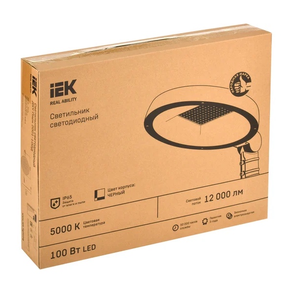 Технические характеристики| Бренд | IEK | | Мощность | 100-140 Вт | | Цветовая температура | 5000-6500K | | Монтажный диаметр | 51-65 мм | | Источник питания | Электросеть 220-240 V | | Цвет корпуса | Черный | | Дополнительные функции | Нет | | Степень пылевлагозащиты | IP65 | Код EAN: 4610084157741, 4610084157758 Код товара: LDKU0-2001-100-5000-K02