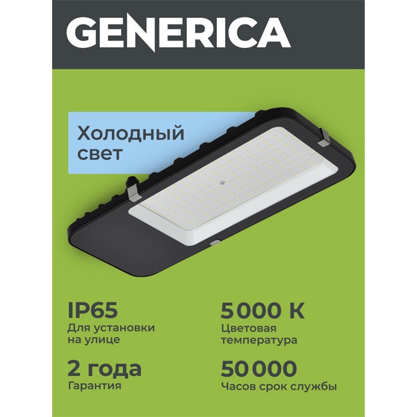 Уличный консольный светодиодный светильник Генерика ДКУ 4001 для уличного освещения, мощностью 120 Ватт, дневной свет КСС Д LDKU0-4002-120-5000-K03-GПредназначен для наружного освещения дорог со средней и низкой интенсивностью движения, парков, прогулочных и велосипедных дорожек, дворовых территорий, площадей, автостоянок и других общественных пространств. Светильник оснащён рассеивателем из закалённого ударопрочного стекла, обеспечивающим равномерное распределение светового потока и высокую степень защиты от механических воздействий. Все узлы крепления и электронные компоненты выполнены с виброустойчивой защитой, что гарантирует надёжную работу в условиях повышенных нагрузок и продлевает срок службы оборудования. Конструкция предусматривает возможность установки нескольких светильников на один кронштейн, что позволяет создавать гибкие схемы освещения в зависимости от требований объекта. Дополнительные преимущества: устойчивость к перепадам температур и атмосферным воздействиям;энергоэффективные светодиоды с длительным сроком службы;простота монтажа и обслуживания;совместимость с системами автоматического управления освещением.Характеристики:- Мощность: 120 Вт