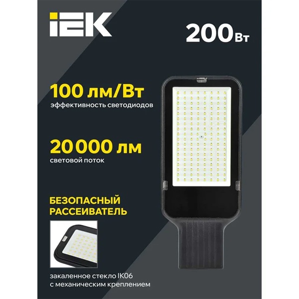 Консольный влагозащищенный светодиодный светильник ИЭК ДКУ 1013 для уличного освещения, мощностью 200 Ватт, дневной свет LDKU1-1013-200-5000-K03Предназначены для наружного освещения таких объектов как: дороги со средней и низкой интенсивностью движения, парки и прогулочные дорожки, придворовые территории, площади, автостоянки и др. - Литой корпус светильника выполнен из алюминиевого сплава, что обеспечивает оптимальный отвод тепла от электронных компонентов.