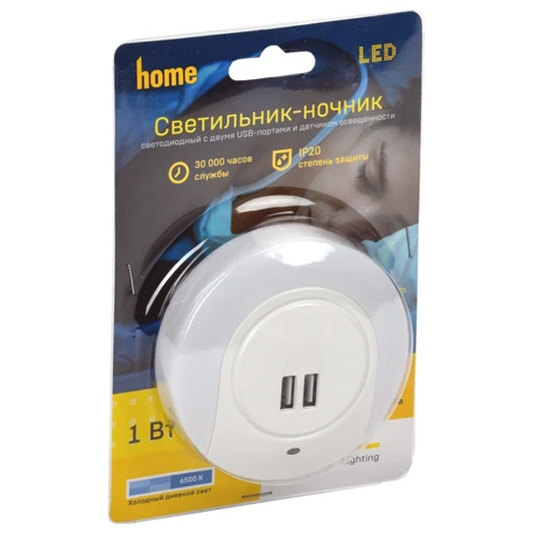 LDNN5-001-SQ-P-00-S-K01 Светильник-ночник ИЭК 001 220В круг с USB разъемом и датчиком освещенности