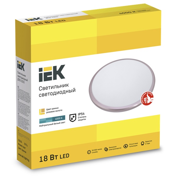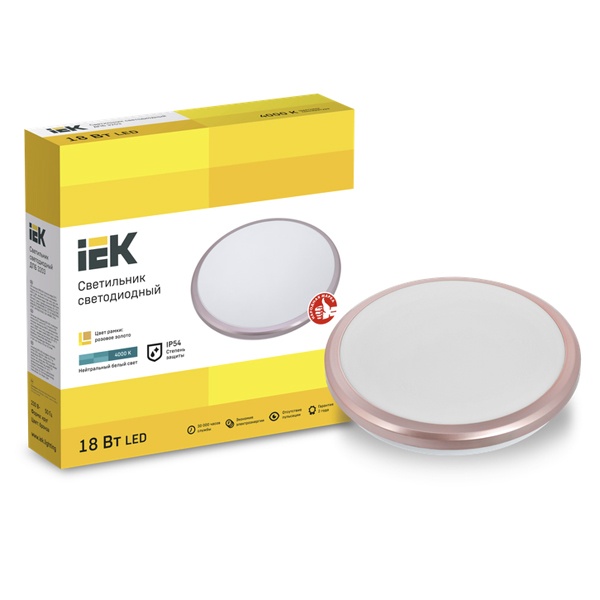 Круглый влагозащищенный светильник светодиодный ДПБ мощность 18 Вт, дневной свет, цвет розовое золото LDPB0-3203-18-4000-K01Светильник светодиодный серии ДПБ используется для внутреннего освещения бытовых, общественных и производственных освещений с повышенным содержанием пыли и влаги. Конструкция светильника и применяемые материалы обеспечивают высокую механическую прочность и защиту от проникновения пыли и влаги по классу IP54. Характеристики:- Мощность: 18 Вт