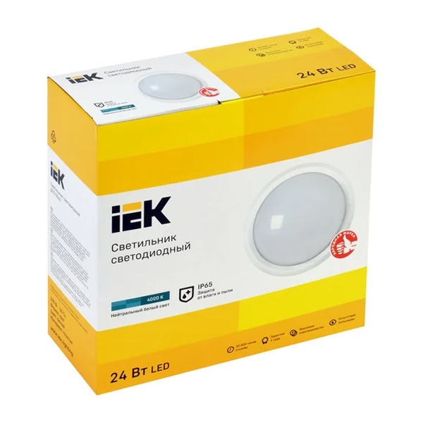 Светильник светодиодный, влагозащищенный ДПО 5060, мощностью 24 Вт, круг белый, белый свет LDPO0-5060-24-4000-K01Светильник светодиодный серии ДПО используется для внутреннего освещения бытовых, общественных и производственных освещений с повышенным содержанием пыли и влаги. Конструкция светильника и применяемые материалы обеспечивают высокую механическую прочность и защиту от проникновения пыли и влаги по классу IP65. Особенности:- Светильники могут использоваться в холодном климате