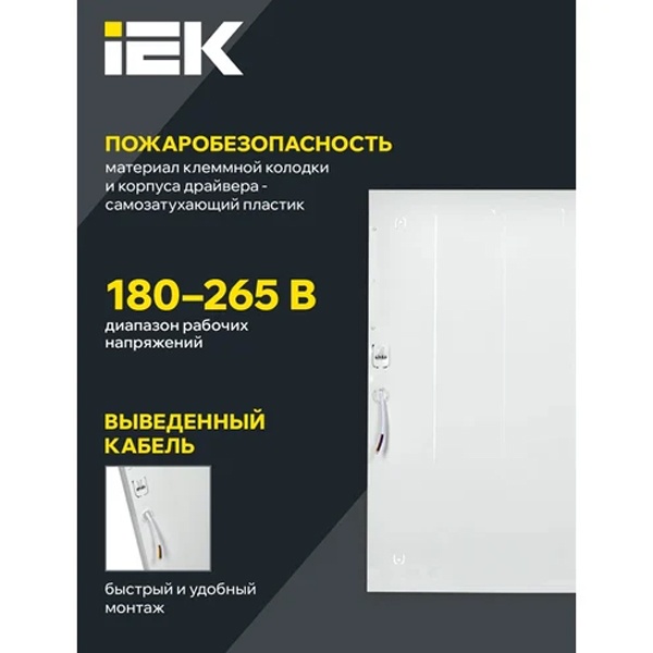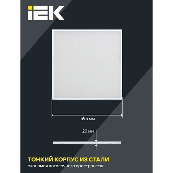 Самая яркая панель IEK c эффективностью до 100Лм/Вт. Широко используется для освещения складов, магазинов и других общественных помещений. Клеммная колодка и корпус драйвера из самозатухающего пластика, комплекс защит от короткого замыкания, перенапряжений и нестабильности сети.