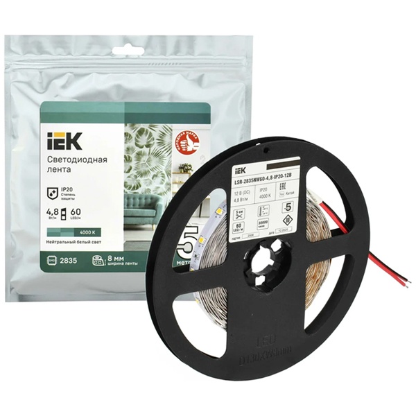 • Лента светодиодная ИЭК LED LSR 2835 NW 60Led/m 4,8W/m 12V IP20 4000K белый 8mm (уп. 5м)