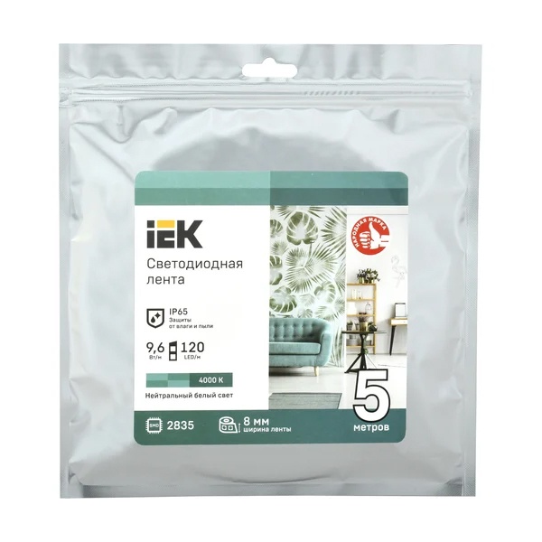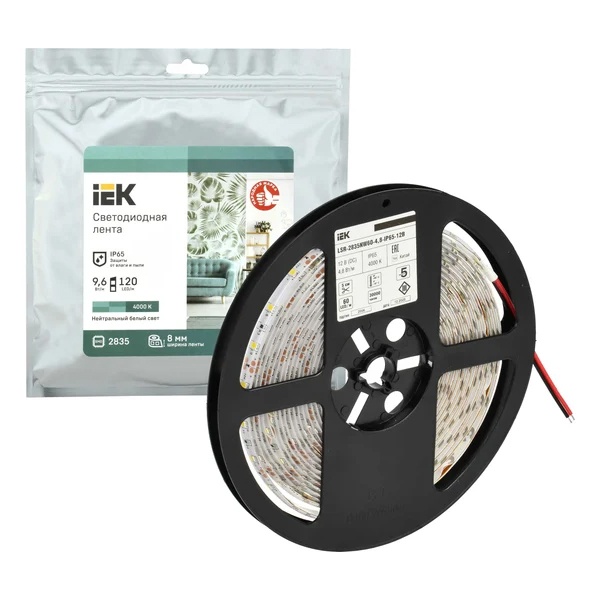 • Лента светодиодная ИЭК LED LSR 2835 NW 60Led/m 4,8W/m 12V IP65 4000K 8mm (уп. 5м)