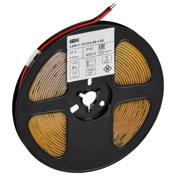 Светодиодная лента IEK с технологией COB (Chip On Board) и плотностью 312 светодиодов на метр предназначена для создания качественного и равномерного освещения. Она идеально подходит для декоративной подсветки мебели, ниш, барных стоек, витрин, оконных проемов, а также для оформления элементов интерьера — многоуровневых и подвесных потолков, карнизов, плинтусов и архитектурных деталей.