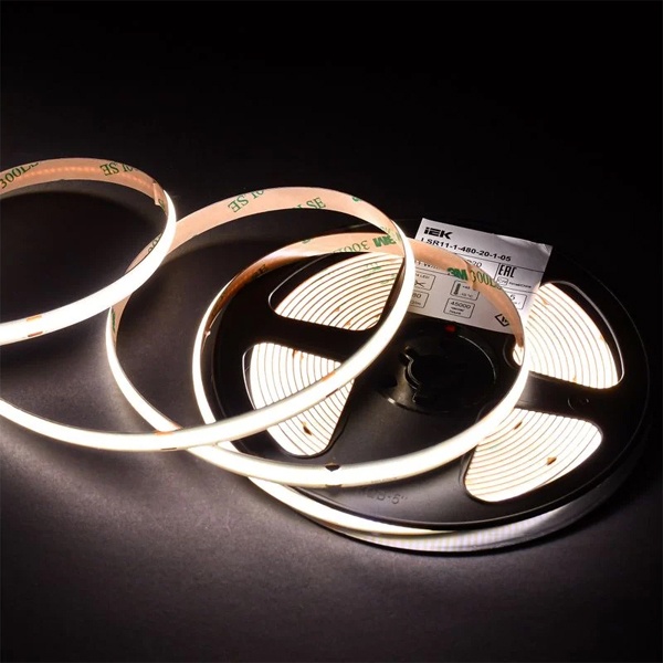 Светодиодная лента IEK с технологией COB (Chip On Board) и плотностью 480 светодиодов на метр предназначена для создания качественного и равномерного освещения. Она идеально подходит для декоративной подсветки мебели, ниш, барных стоек, витрин, оконных проемов, а также для оформления элементов интерьера — многоуровневых и подвесных потолков, карнизов, плинтусов и архитектурных деталей.
