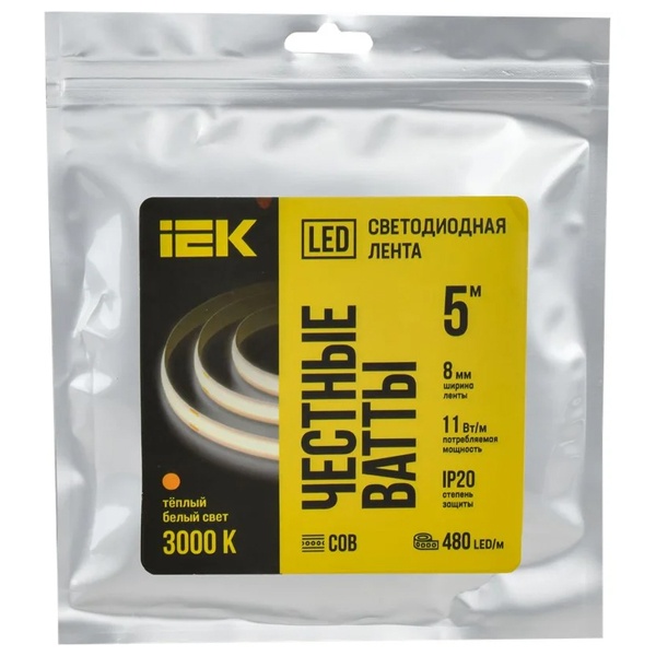 Светодиодная COB лента ИЭК 480LED 11Вт/м 3000К 24В IP20 5000х8мм (упаковка 5 м) LSR11-1-480-20-1-05