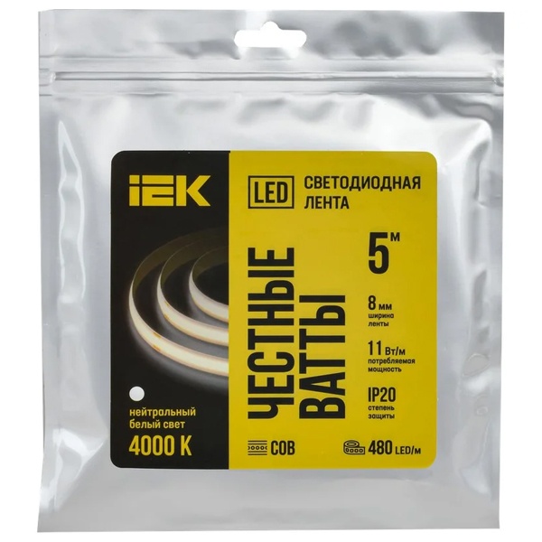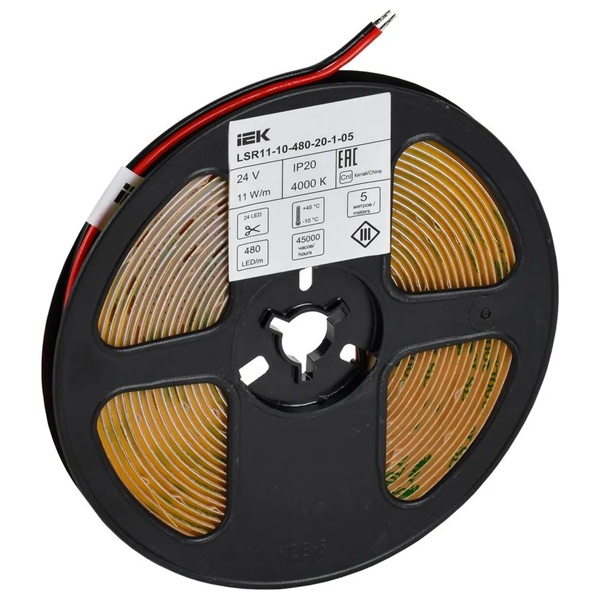 Светодиодная лента IEK с технологией COB (Chip On Board) и плотностью 480 светодиодов на метр предназначена для создания качественного и равномерного освещения. Она идеально подходит для декоративной подсветки мебели, ниш, барных стоек, витрин, оконных проемов, а также для оформления элементов интерьера — многоуровневых и подвесных потолков, карнизов, плинтусов и архитектурных деталей.