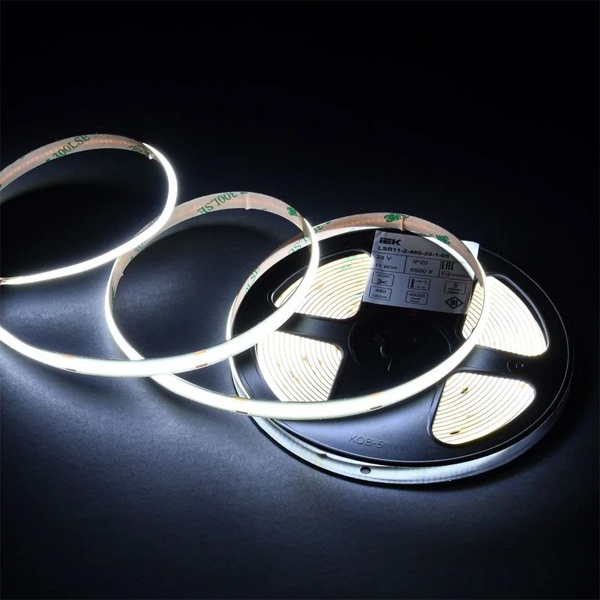 • Светодиодная COB лента ИЭК 480LED 11Вт/м 6500К 24В IP20 5000х8мм (упаковка 5 м)
