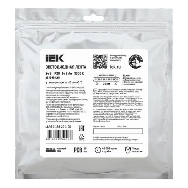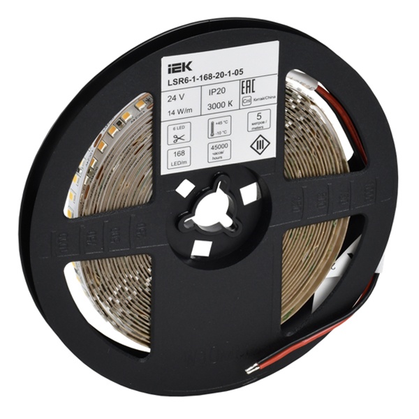 LSR6-1-168-20-1-05 Лента светодиодная ИЭК LED 2835 168Led/m 14W/m 3000K 24V IP20 теплый белый 10mm (уп. 5м)