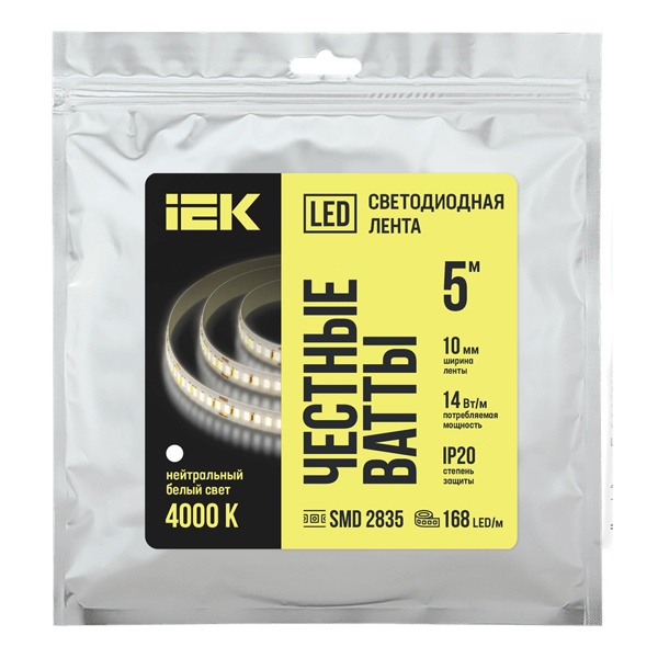 Лента светодиодная ИЭК LED 2835 168Led/m 14W/m 4000K 24V IP20 белый 10mm (уп. 5м)