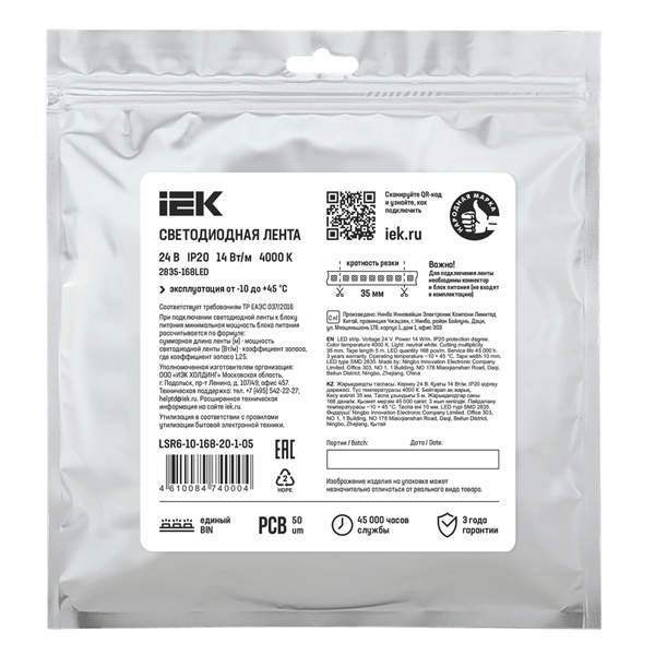 LSR6-10-168-20-1-05 Лента светодиодная ИЭК LED 2835 168Led/m 14W/m 4000K 24V IP20 белый 10mm (уп. 5м)