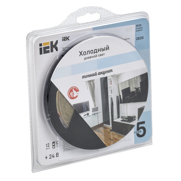 Лента светодиодная ИЭК LED LSR 2835 W 120Led/m 12W/m 6500K 24V IP20 белый 8mm (уп. 5м) LSR6-2-120-20-1-05-1