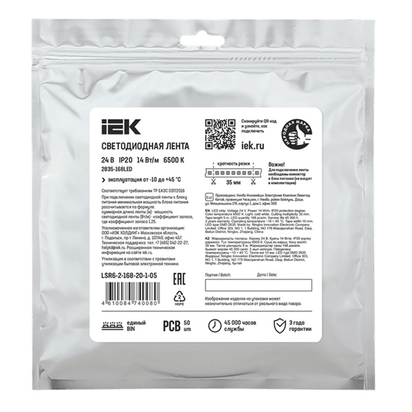 LSR6-2-168-20-1-05 Лента светодиодная ИЭК LED 2835 168Led/m 14W/m 6500K 24V IP20 холодный дневной 10mm (уп. 5м)