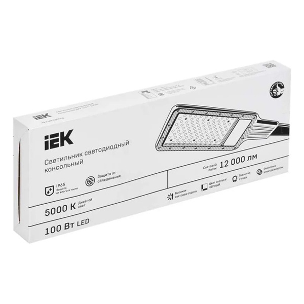 Черный влагозащищенный алюминиевый светодидный светильник ИЕК ДКУ-1011 на консольный кронштейн 50 мм, мощностью 100 Ватт, белый свет КСС Ш LT-DKU1-1011-100-50-K03Светильники предназначены для эффективного и экономичного освещения улиц и дорог, парковых аллей, пешеходных зон, железнодорожных платформ, промышленных территорий и других протяжённых объектов. Благодаря широкой кривой светораспределения обеспечивается равномерная засветка дорожного полотна и прилегающих зон без образования «слепых пятен». Высококачественная вторичная оптика не только повышает эффективность светового потока, но и предотвращает ослепление пешеходов и водителей. Корпус выполнен из литого алюминиевого сплава, обладающего высокой прочностью, устойчивостью к коррозии и эффективным теплоотводом, что продлевает срок службы светильника. Вторичная оптика изготовлена из UV-устойчивого, ударопрочного поликарбоната, сохраняющего прозрачность и форму даже при длительной эксплуатации. Характеристики:- Материал корпуса: Алюминий