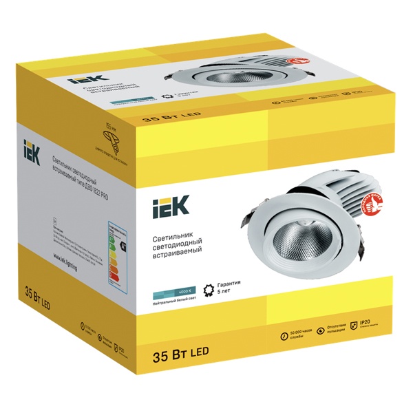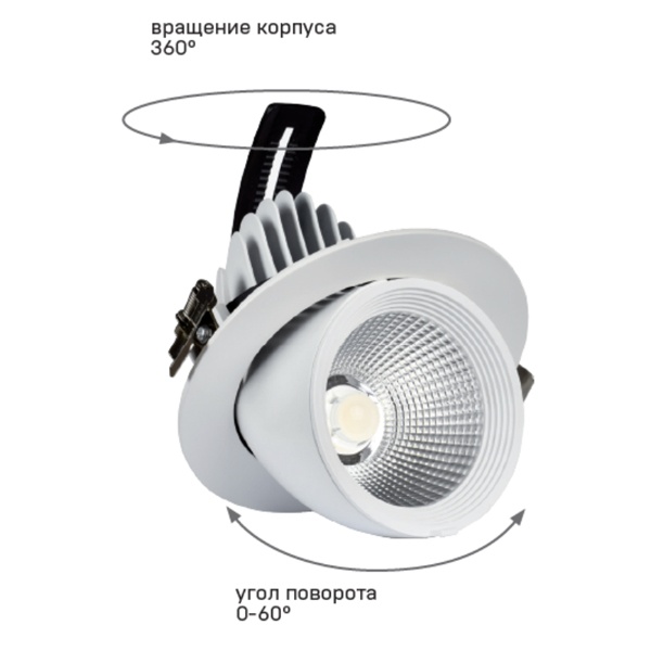 Встраиваемый поворотный LED светильник мощностью 35 Ватт, белый свет LTP-DSO0-1822-35-40-K01