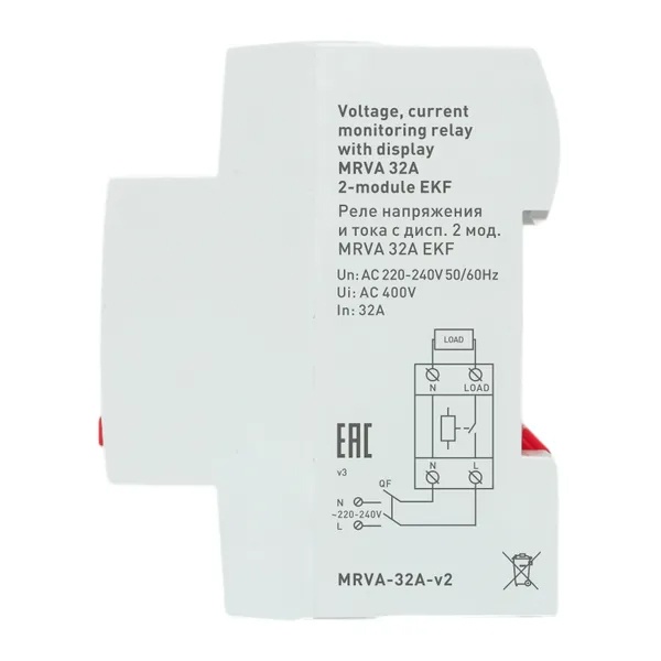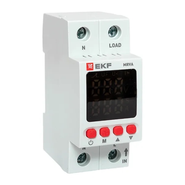 Реле контроля тока и напряжения в однофазной сети ЭКФ PROxima, коммутируемый ток 32 Ампера MRVA-32A-v2 Реле напряжения и тока предназначены для непрерывного мониторинга параметров электрической сети и надежной защиты оборудования от неблагоприятных факторов - таких как перепады напряжения, перегрузки и резкие скачки тока. Эти устройства широко применяются как в однофазных, так и в трехфазных сетях, обеспечивая стабильную и безопасную работу бытовой и промышленной техники.