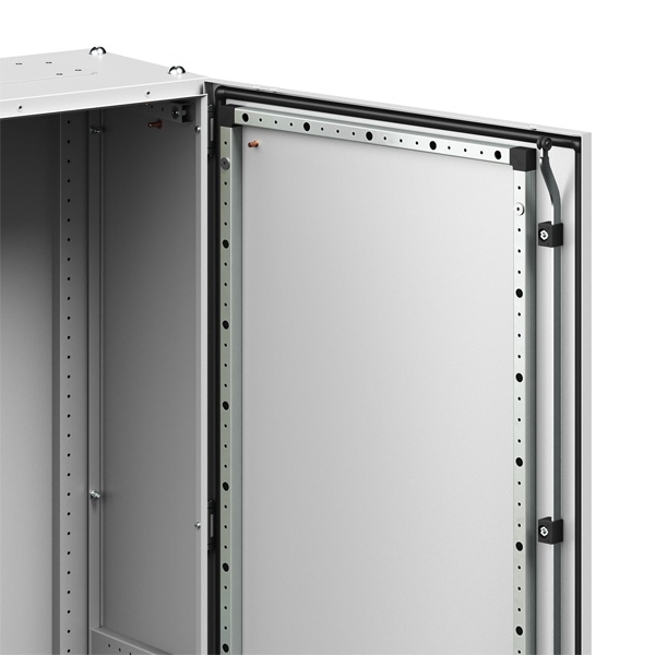 Корпус RAM fit может использоваться как в напольном, так и в навесном исполнении, что расширяет области его применения. Допустимая статическая нагрузка на корпус составляет до 400 кг, на монтажную панель — до 300 кг, на дверь — до 50 кг, что позволяет размещать тяжелое и габаритное оборудование без снижения надежности конструкции.