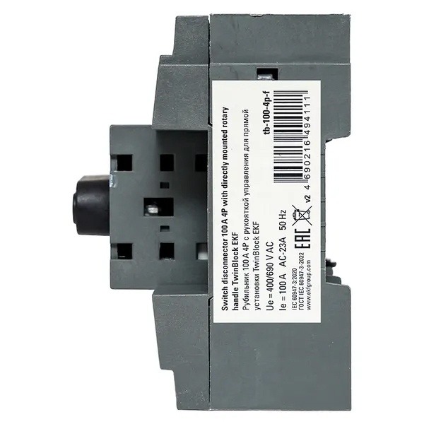 Рубильник EKF PROxima TwinBlock 100A 4P c рукояткой управления для прямой установки (выключатель нагрузки) tb-100-4p-f