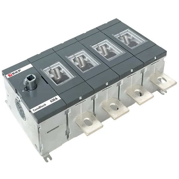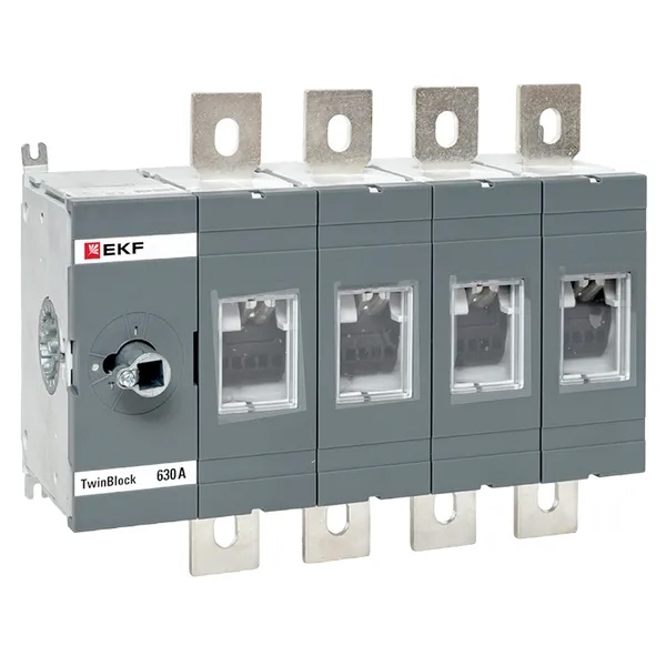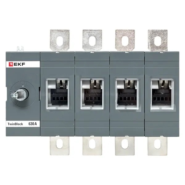 Четырехполюсный выключатель-разъединитель ЭКФ TwinBlock без поворотной ручки, номинальный ток 630 Ампер tb-s-630-4p Выключатели-разъединители серии TwinBlock EKF PROxima предназначены для пропускания номинальных токов, а также для оперативного включения и отключения электрических цепей переменного тока напряжением до 690 В частотой 50 и 60 Гц в составе распределительных устройств.