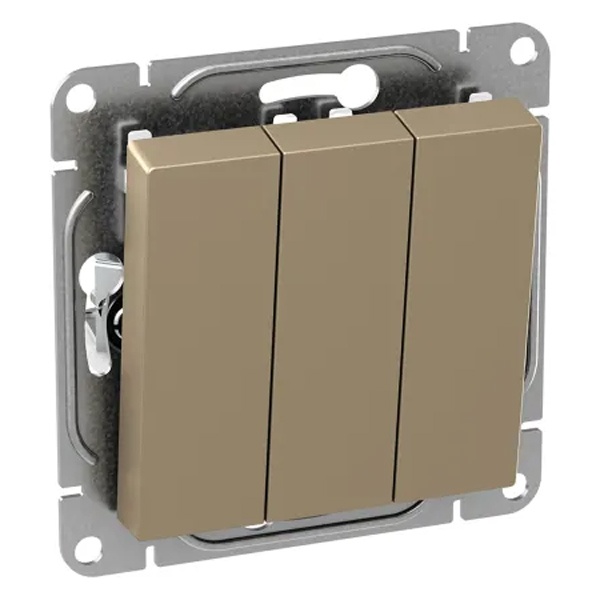 Трехклавишный выключатель с винтовым подключением скрытой установки цвет шампань, ЕКФ Эпика UP1-SWC-31