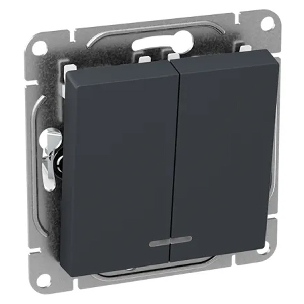 Двухклавишный выключатель с индикацией скрытой установки цвет графит, винтовое подключение ЕКФ Эпика UP1-SWG-24