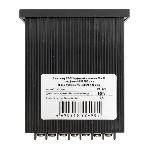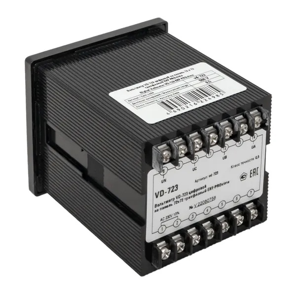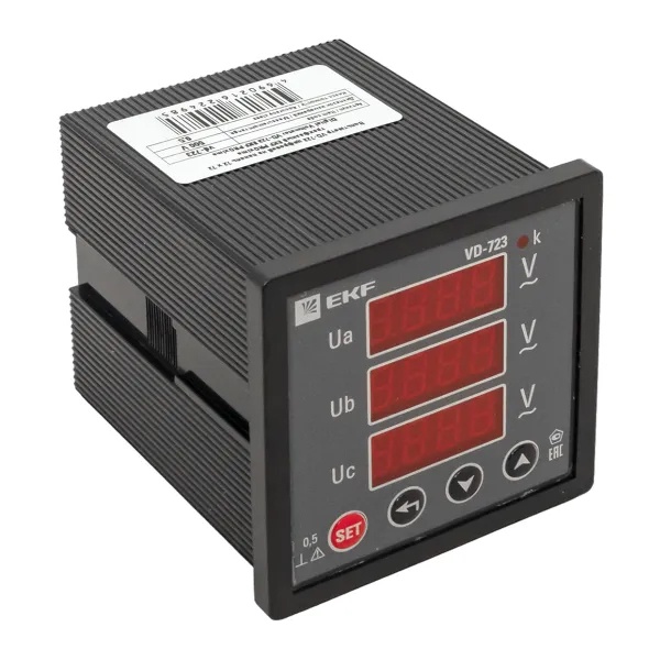 Цифровой трехфазный измеритель напряжения до 500В для щитового оборудования EKF vd-723 Цифровые электроизмерительные вольтметры торговой марки EKF предназначены для точного измерения напряжения в электрических цепях переменного тока частотой 50/60 Гц. Приборы обеспечивают стабильный и достоверный контроль параметров сети и могут применяться как в составе локальных распределительных щитов, так и в комплексных системах энергомониторинга.