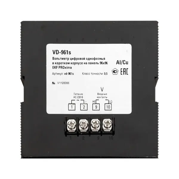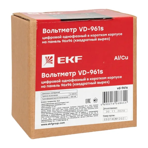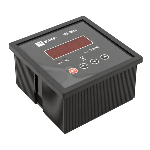 Цифровой однофазный измеритель напряжения до 500В для щитового оборудования 96х96 EKF VD-961s Цифровые электроизмерительные вольтметры торговой марки EKF предназначены для точного измерения напряжения в электрических цепях переменного тока частотой 50/60 Гц. Приборы обеспечивают стабильный и достоверный контроль параметров сети и могут применяться как в составе локальных распределительных щитов, так и в комплексных системах энергомониторинга.