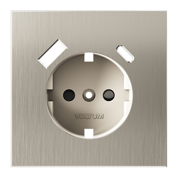 VLSM001011 Накладка Voltum S70 для розетки с заземлением и защитными шторками с USB A+C Metal никель