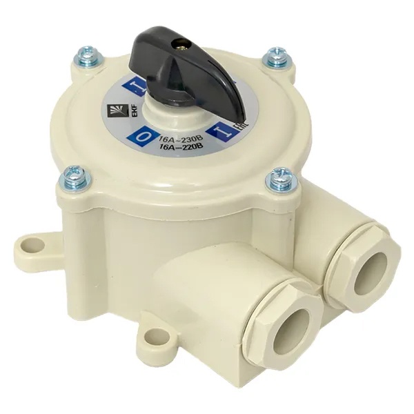 Накладной герметичный поворотный трехполюсный выключатель (пакетник) 16А, двухпозиционный ЭКФ в корпусе из пластика pv-3-16-4