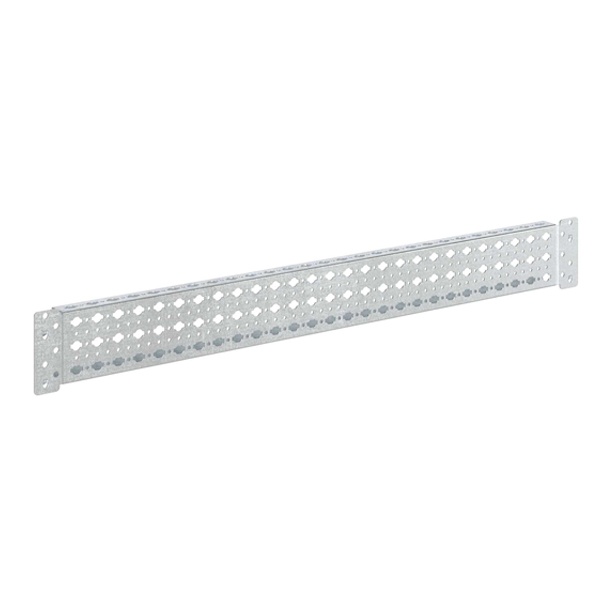 Изготовлена из оцинкованной стали толщиной 1,5 мм, имеет перфорацию с шагом 25 мм. Конструкция предусматривает три монтажные плоскости и может устанавливаться как по глубине, так и по ширине шкафа.