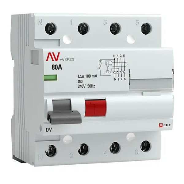 • Устройство защитного отключения УЗО EKF AVERES DV 4P 80А 100мА (электромеханическое) А (ВДТ)