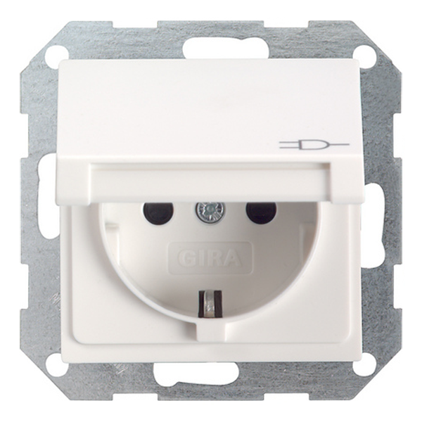 Розетка с заземлением и с крышкой Gira E3 Глянцевый белый (в сборе)