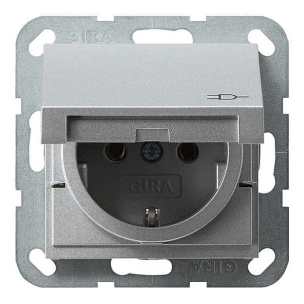 Розетка с заземлением и с крышкой Gira Esprit-C Алюминий (в сборе)
