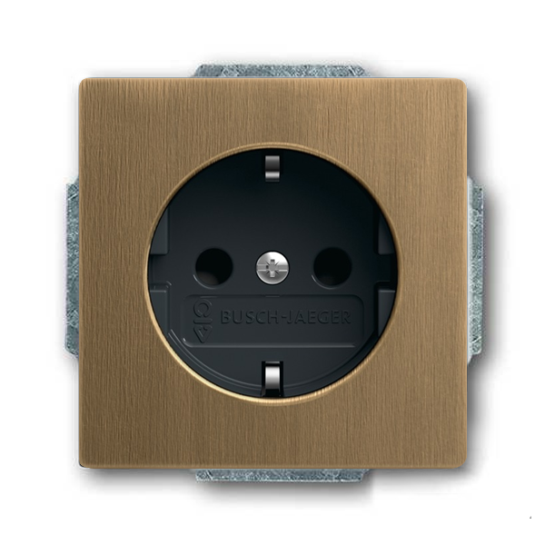 Розетка с заземлением, винтовые клеммы ABB Династия Античная латунь - графит (в сборе)
