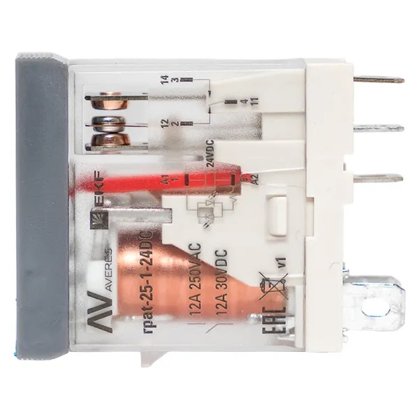 Компактное реле управления с 1 перекидной группой контактов, катушка DC 24В, индикация и кнопка, EKF RPA rpat-25-1-24DC