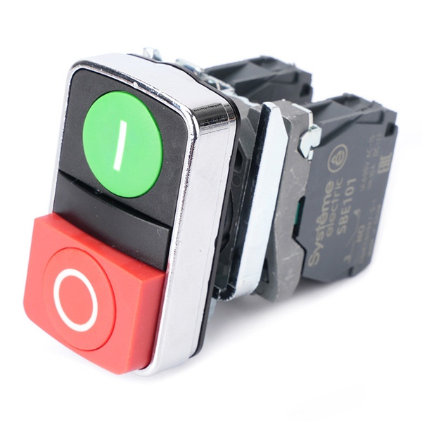 Кнопка управления влагозащищенная двойная SB4 I-O (зеленый-красный) d22 мм 1NO+1NC SB4BL73415
