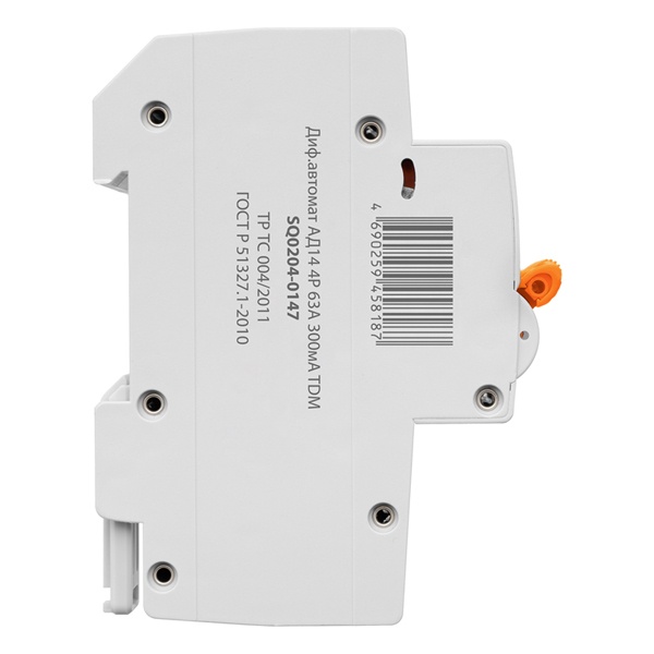 Четырехполюсный дифавтомат АД14 ТДМ, номинальный ток 63 ампера уставка С, дифференциальный ток 300 мА, шириной 5 модулей SQ0204-0147
