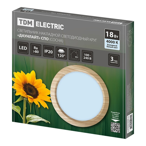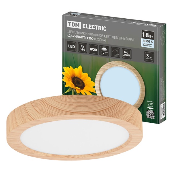 • Светильник светодиодный TDM накладной круг Даунлайт СПО 18 Вт 4000К (сосна) 225х32мм