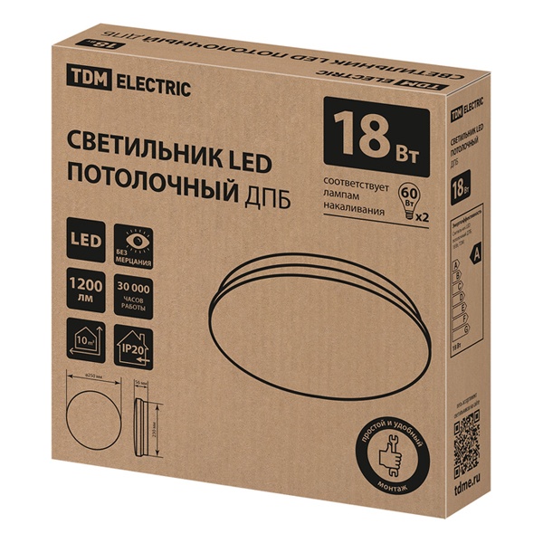 • Светильник светодиодный TDM Классика LED ДПБ 01 18W 6000K 1200Lm D250mm