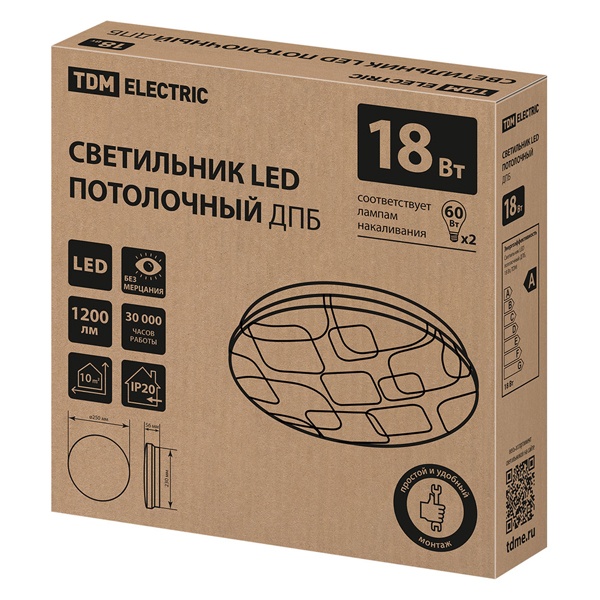 SQ0329-9012 Светильник светодиодный TDM Геометрия LED ДПБ 03 18W 6000K 1200Lm D250mm