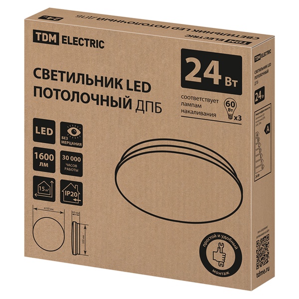 SQ0329-9013 Светильник светодиодный TDM Классика LED ДПБ 01 24W 4000K 1600Lm D320mm