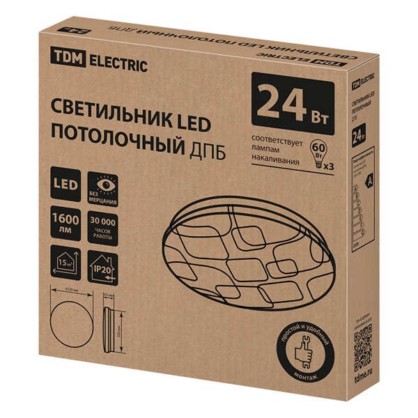 SQ0329-9017 Светильник светодиодный TDM Геометрия LED ДПБ 03 24W 4000K 1600Lm D320mm