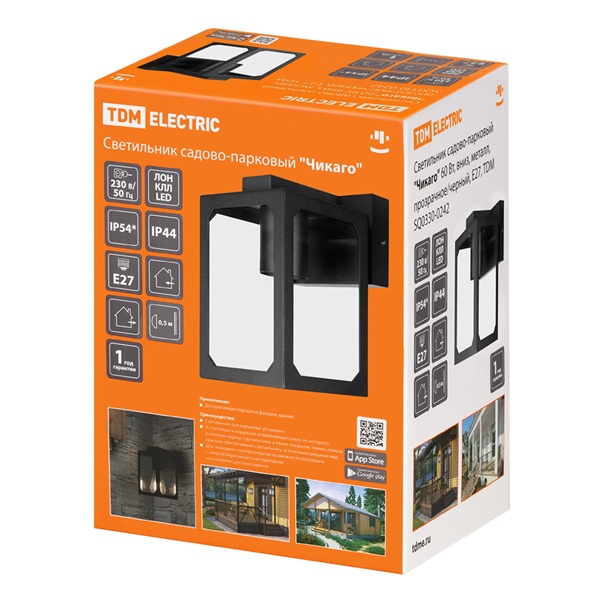 Светильник садово-парковый TDM Чикаго 60W E27 вниз, металл, прозрачное/черный