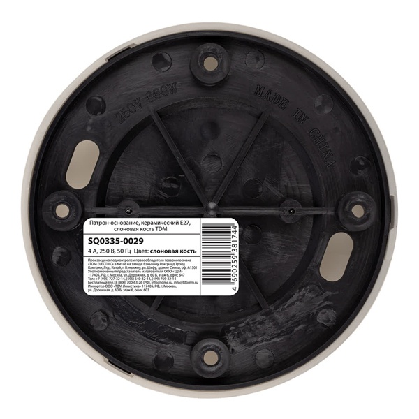 SQ0335-0029 Патрон-основание TDM, керамический E27, слоновая кость, накладной