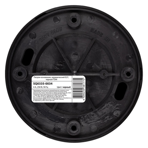 SQ0335-0034 Патрон-основание TDM, керамический E27, черный, накладной