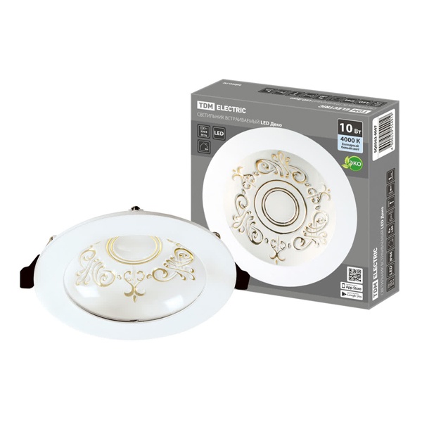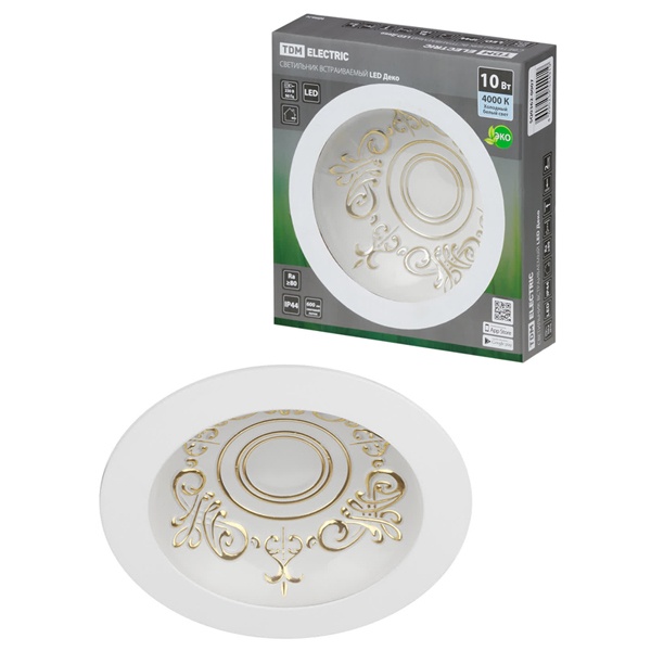 Светодиодный декоративный круглый светильник Даунлайт ТДМ, мощностью 10 Ватт, теплый белый свет, цвет корпуса золото/белый SQ0362-0007